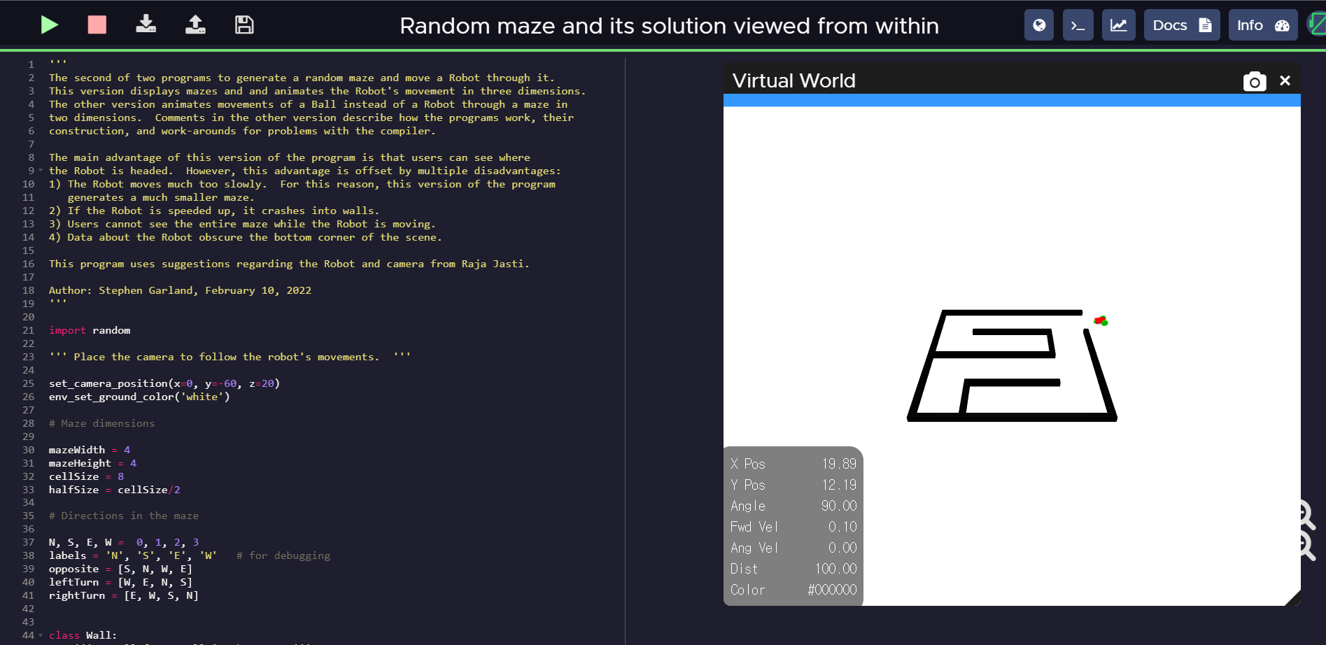온라인 상에서 Python으로 3D 공간에 물건을 배치하고 로봇을 이용하여 탐색하는 사이트이다.