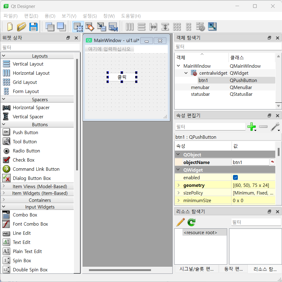 PySide6 디자이너에서 버튼을 넣고 Python에서 클릭 이벤트를 연결해보자.