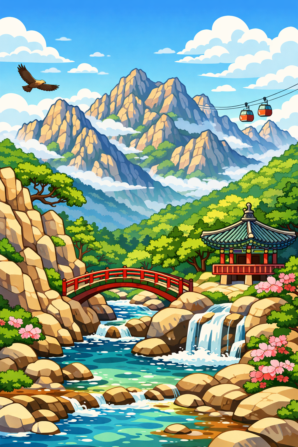 산 만화풍으로 그려줘