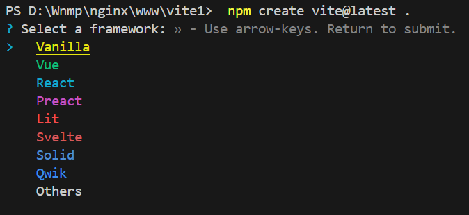 npm cerate vite@latest .