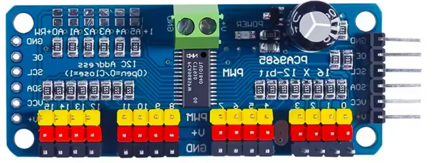 PCA9685는 I2C 기반 16채널 PWM 드라이버이다.